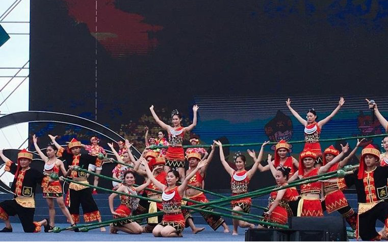 景区演艺团表演的《欢乐的节日》以黎族乐器为衬托,精彩演绎了海南黎族节日欢乐、喜庆的热闹场面,令人眼前一亮。黎族老艺人们的娴熟演奏,一瞬间就仿佛把观众带到了富有传奇色彩的黎族先祖聚居之地,山清水秀,风光旖旎。在表演《海南黎苗三月三 STYLE》节目中,景区演艺团还表演了精彩的竹竿舞(打柴舞),展现了黎族传统舞蹈的魅力,节目声势和视觉效果非常震撼。以丰富的、充满黎族特色的艺术表现形式,淋漓尽致,一气呵成地展现了黎苗人民喜庆丰收,载歌载舞的美好画面,赞美了时代变化的日新月异。
