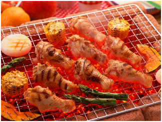 (也可享用,自费BBQ自助烧烤不限量,数十种肉串,素串,任您挑选;酒水饮品(按每瓶收费)畅饮:啤酒、雪碧,可乐)